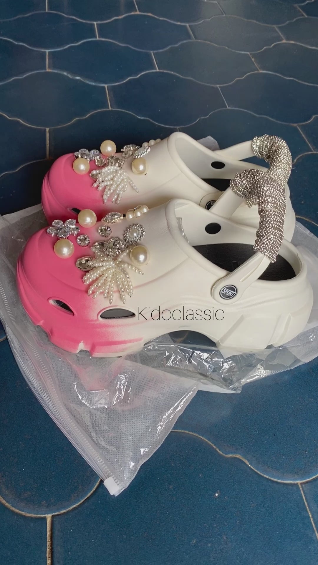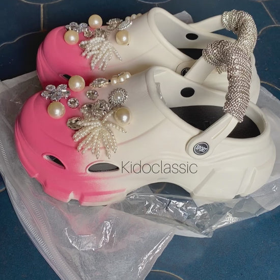 women’s rhinestone stunned pink white crocs