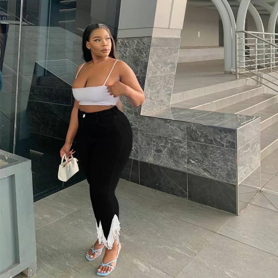 Womens classy ankle ruffles jeans trousers womens ankle jeans
